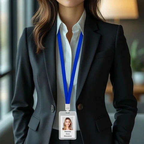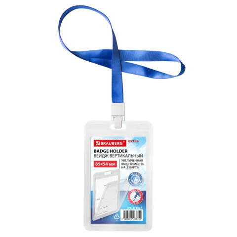 Бейдж вертикальный (85х54 мм) на 2 карты, с лентой 45 см, ЗАЩИТА ОТ ВЛАГИ И ПЫЛИ, BRAUBERG EXTRA, 23