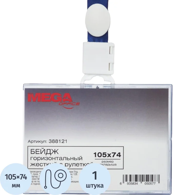 Бейдж на рулетке Mega Office 105х74мм, 40см