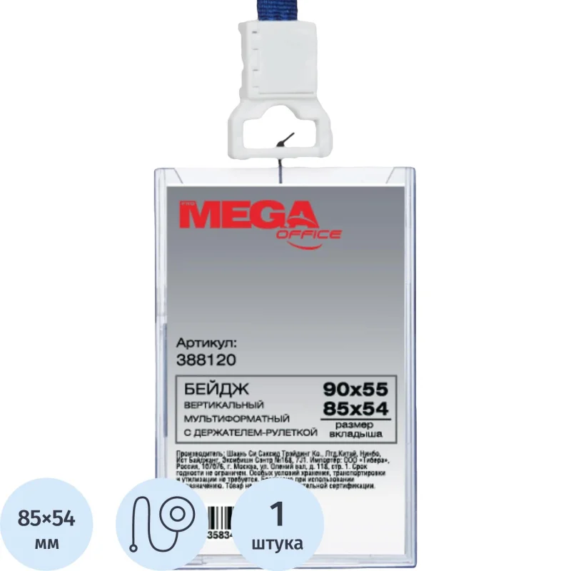 Бейдж на рулетке Mega Office 74х105мм, 40см