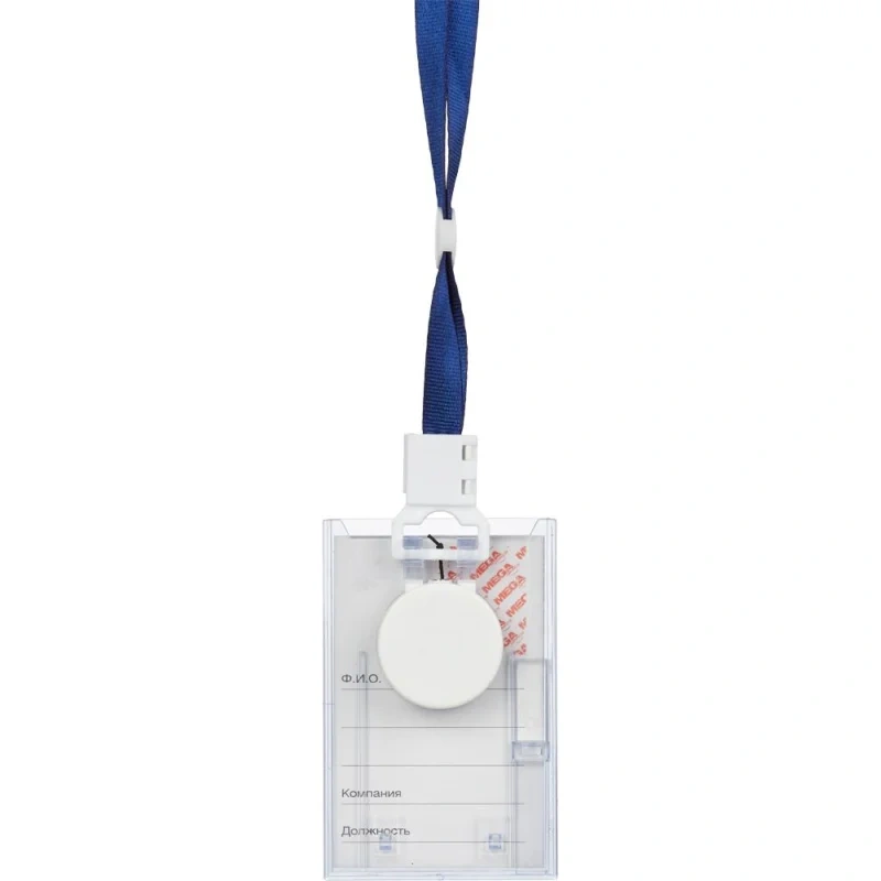 Бейдж на зажиме с тесьмой Brauberg 90х60мм, синяя тесьма 45см