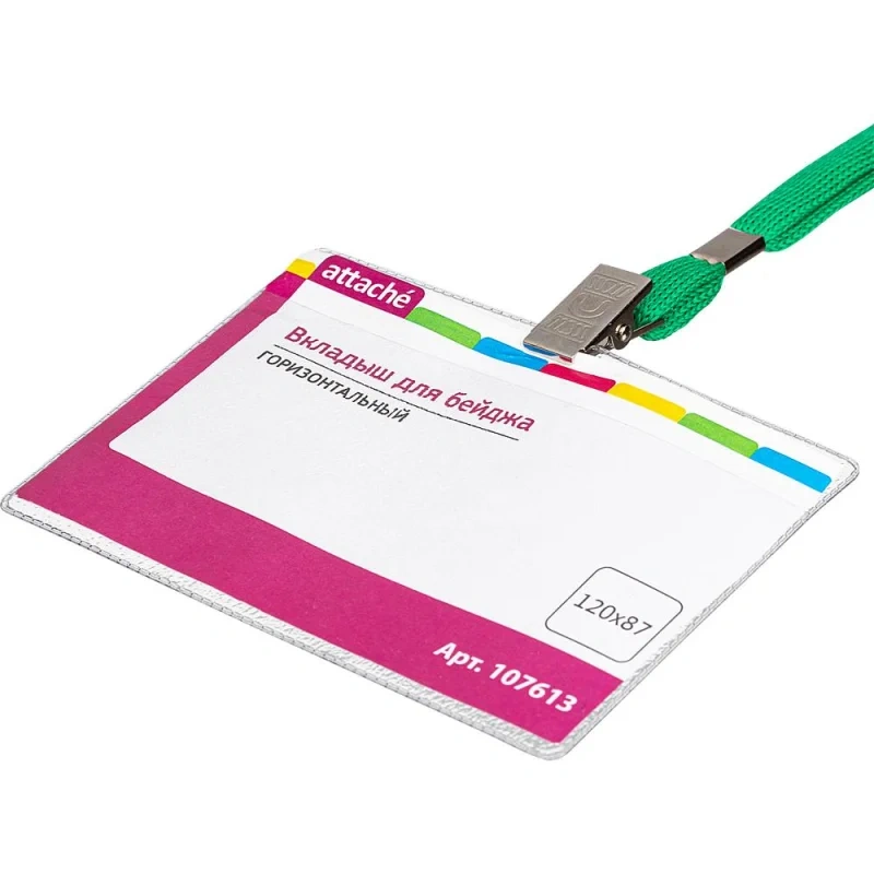 Бейдж на зажиме с тесьмой Attache 120х87мм, зеленая тесьма 80см, 10шт/уп