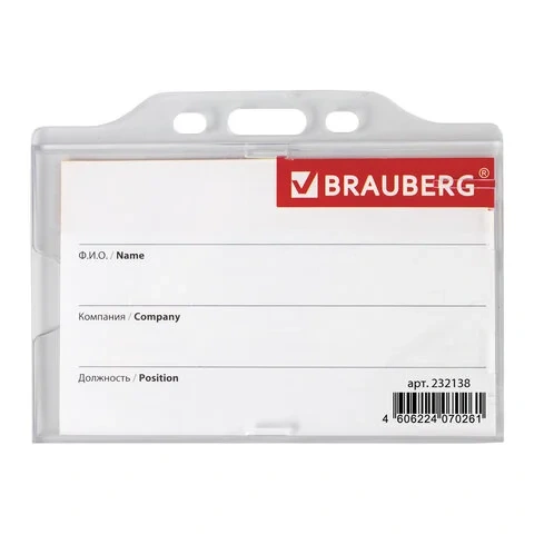 Бейдж на зажиме с булавкой Brauberg 120х90мм
