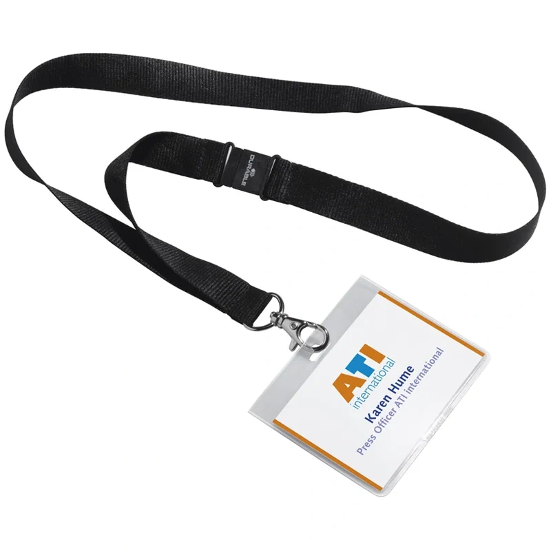 Бейдж на зажиме с тесьмой Durable 60х90мм, черная тесьма, 10шт/уп, 8139-01