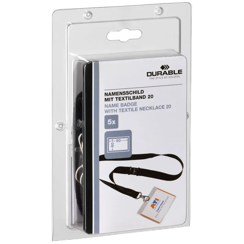 Бейдж с тесьмой Durable 60х90мм, черный, 5шт/уп, 8600-01