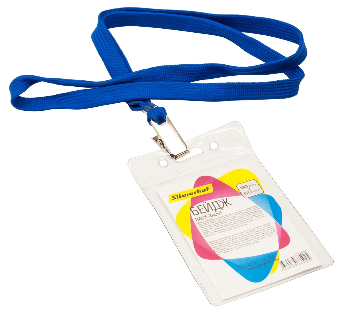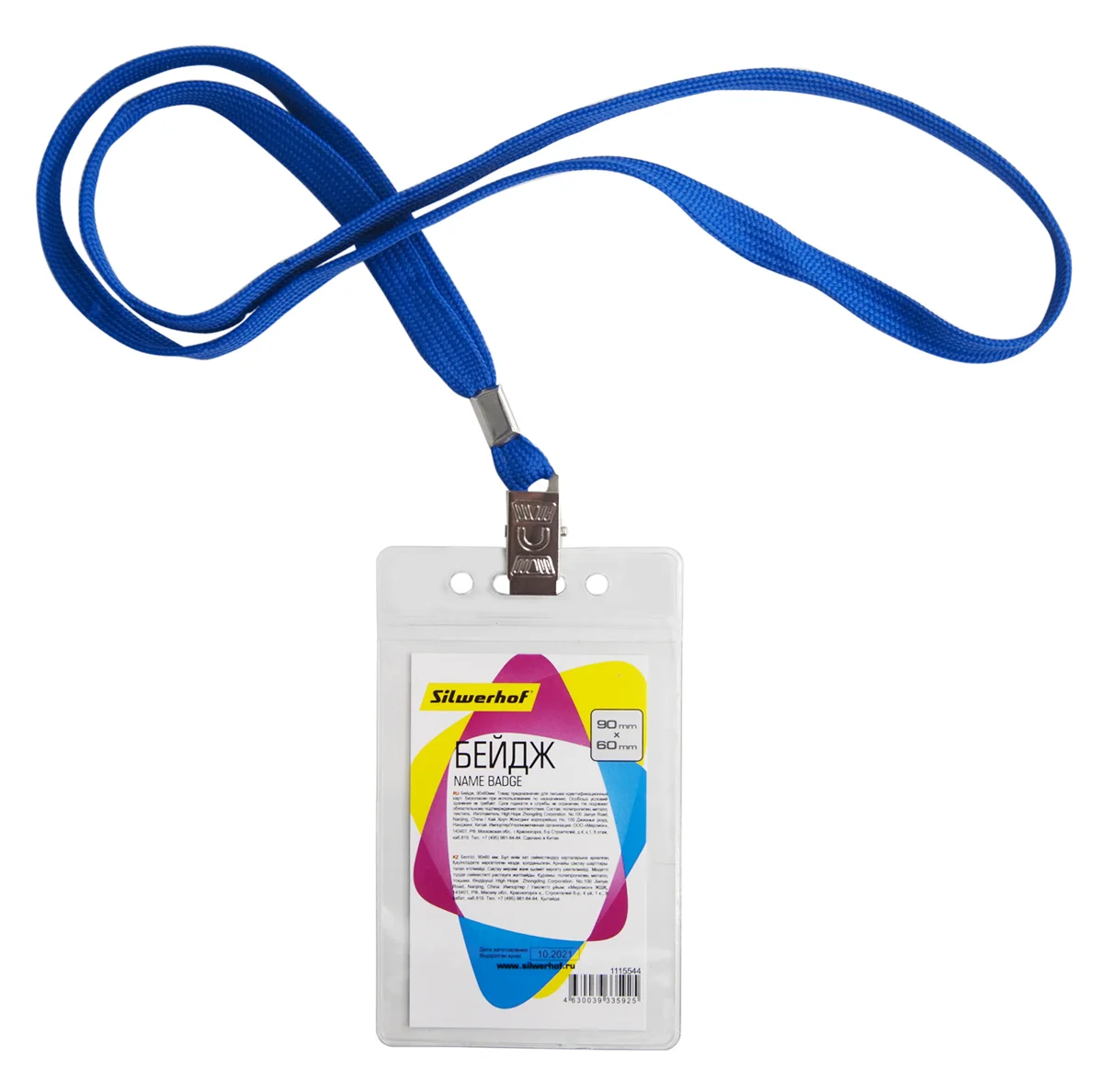Бейдж с тесьмой Brauberg для школьников 55х90мм, синяя тесьма, на клип-замке с петелькой
