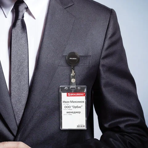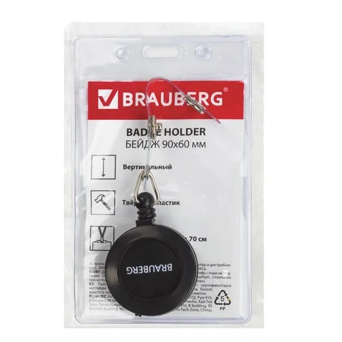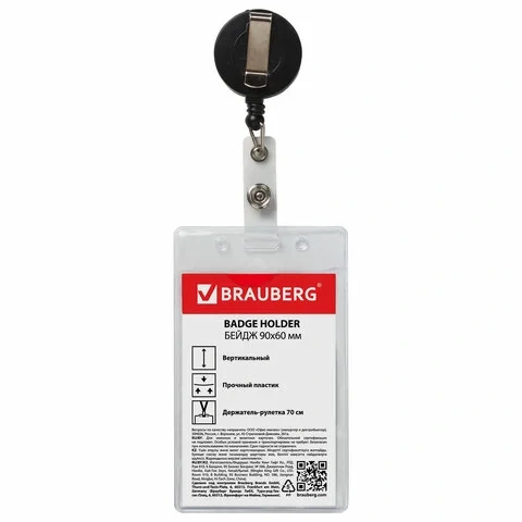 Бейдж на рулетке Brauberg 90х60мм, 70см