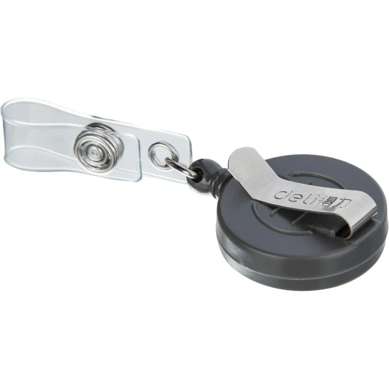 Рулетка для бейджа Deli 80см, серый, 12шт/уп