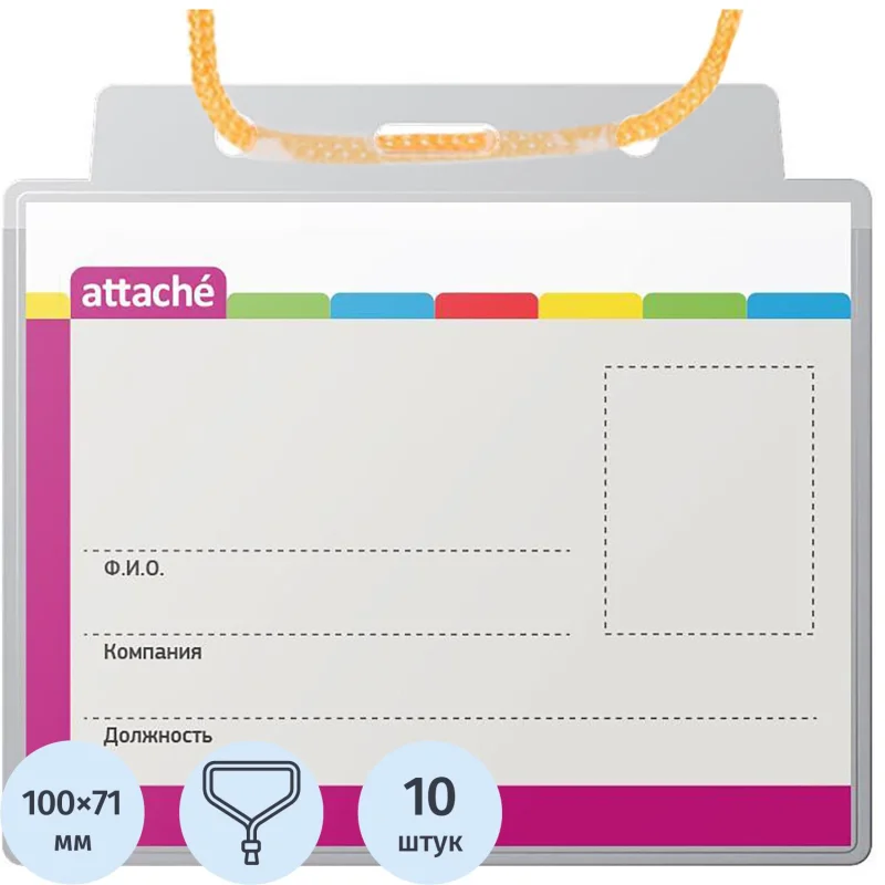 Бейдж 107х83мм Attache д/карт 100х71мм тесьма '1016, 10 шт