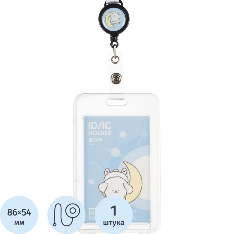 Бейдж БЕЙДЖ ВЕРТИКАЛЬНЫЙ С ДЕРЖАТЕЛЕМ-РУЛЕТКОЙ, синий