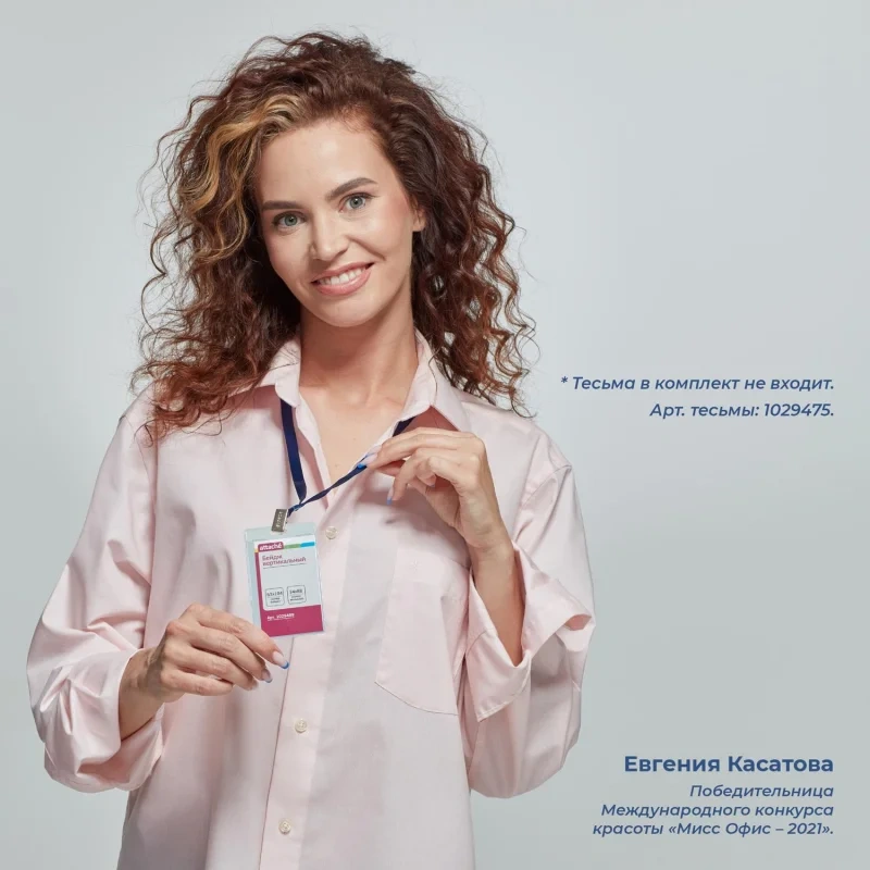 Бейдж 77x118мм Attache д/карт 71х100мм тесьма вертик.1017, 10 шт