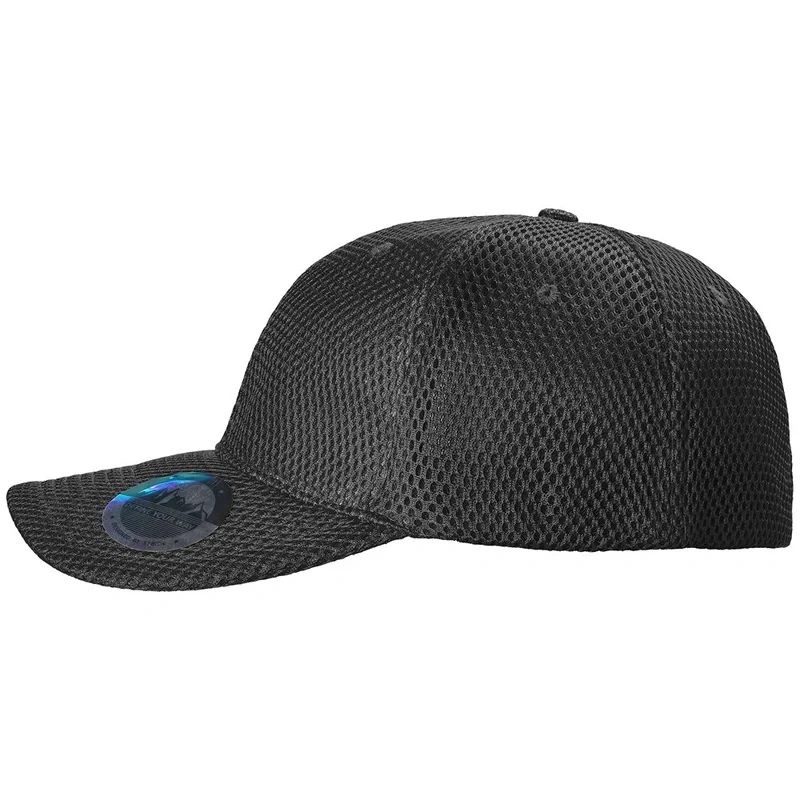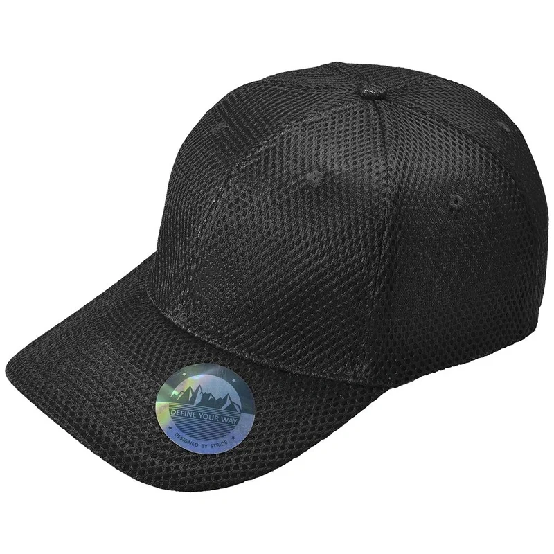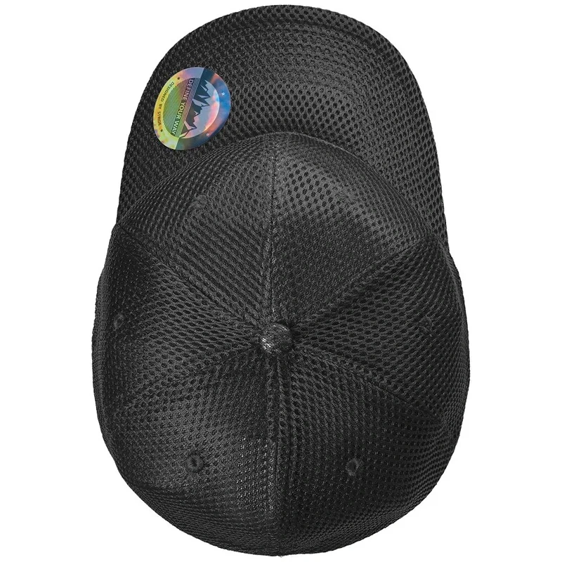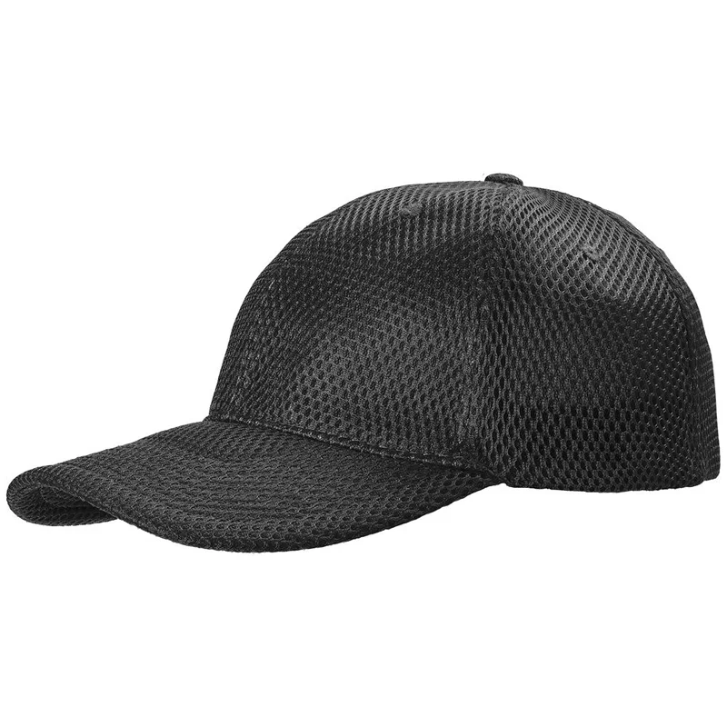 Однотонная бейсболка из спортивной сеткиШесть клиньев, со швом на лбуОбшивные люверсыВшивная эластичная резинка вместо застежки Размер: 56–58 Материал: полиэстер 100% Цвет: черный