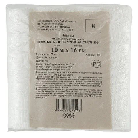 Бинт марлевый нестерильный NEW LIFE КОМПЛЕКТ 20 шт., 10 м х 16 см, плотность 30 (±2) г/м2, 63173
