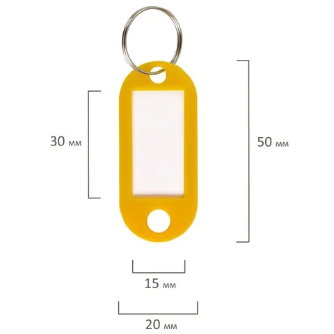 Изготовлены из эластичного пластика. Каждый брелок снабжен металлическим кольцом, белым бумажным вкладышем для маркировки, защищённым пластиковой вставкой от повреждений. Размер брелока - 50х22 мм, информационного окна - 30х15 мм. Цвет - ассорти. 50 штук в упаковке.