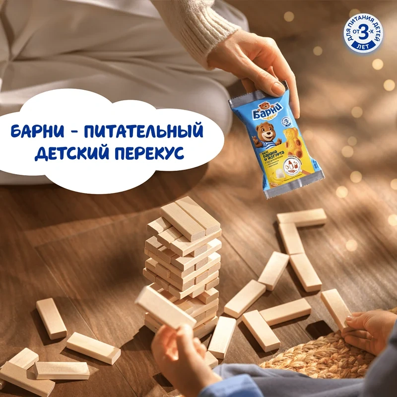 Бисквитное пирожное Барни с бананово-йогуртовой начинкой - специально разработанное для детей кондитерское изделие в виде медвежонка, производится на основе натуральных ингредиентов: злаков и молочных продуктов. Обогащено кальцием, необходимым для здорового роста и развития детей, не содержит красителей и консервантов. Рекомендовано для детей дошкольного возраста от 3х лет. Медвежонок Барни - вкусный, полезный и питательный перекус, прекрасная альтернатива печенью, кексам или другой сладкой выпечке, отлично сочетается с соком, молоком, кефиром, йогуртом, чаем или какао, его удобно брать с собой в дорогу, давать ребенку в школу или на прогулку. Это отличный вариант сладкого угощения на детский праздник в детский сад, школу, на День рождения. В коробке пять пирожных в индивидуальных упаковках.