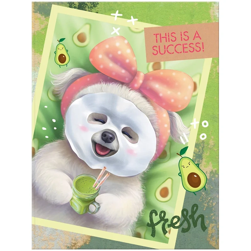 Состоит из 64 листов размером 162*215 мм офсетной бумаги белого цвета плотностью 60 г/м2. Линовка – клетка. Обложка с интегральным переплётом выполнена из картона с матовой ламинацией.