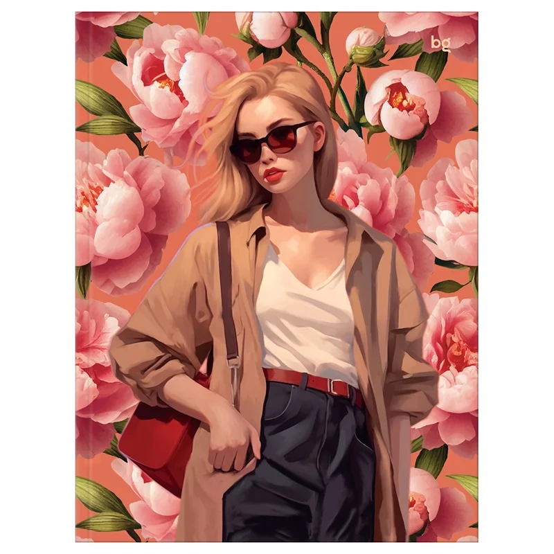 Состоит из 64 листов размером 162*215 мм офсетной бумаги белого цвета плотностью 60 г/м2. Линовка – клетка. Обложка с интегральным переплётом выполнена из картона с глянцевой ламинацией и выборочным лаком.