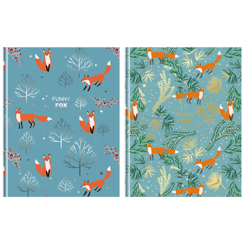 Состоит из 80 листов размером 167*216 мм офсетной бумаги белого цвета плотностью 60 г/м2. Линовка – клетка. Обложка – твёрдый картон с матовой ламинацией и тиснением голографической фольгой. Интересное оформление с изображением лисиц.