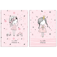 Состоит из 64 листов размером 112*151 мм офсетной бумаги белого цвета плотностью 60 г/м2. Линовка – клетка. Обложка – твёрдый картон с матовой ламинацией и блёстками. Блок и обложка имеют скругленные уголки. Милое оформление понравится девушкам.