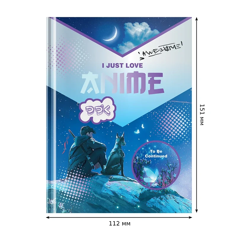 Состоит из 80 листов размером 112*151 мм офсетной бумаги белого цвета плотностью 60 г/м2. Линовка – клетка. Обложка – твёрдый переплёт с глянцевой ламинацией.
