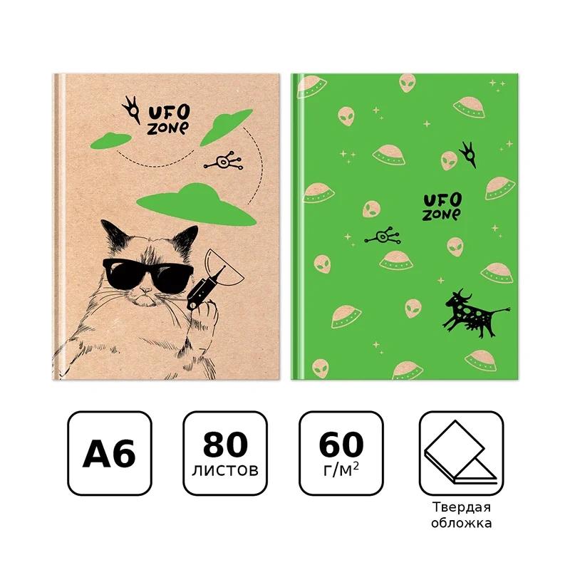 Бизнес-блокнот А6, 80л., BG 'UFO zone', матовая ламинация