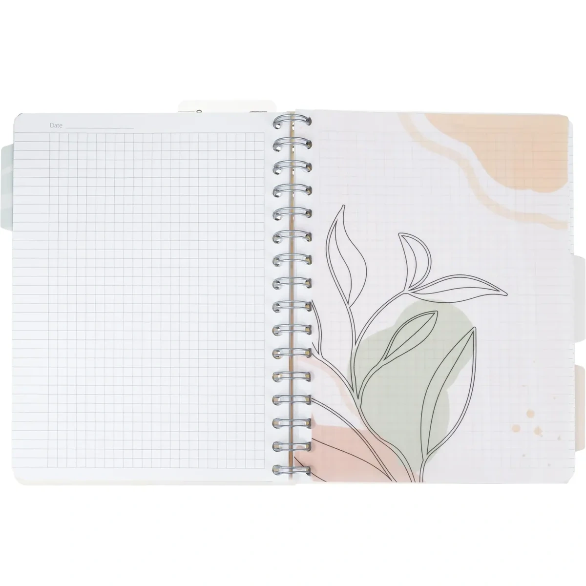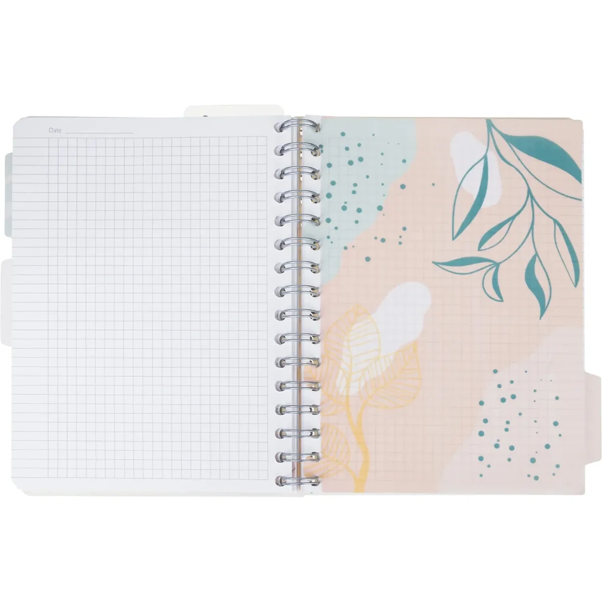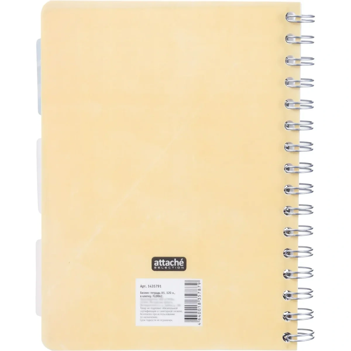 Бизнес-тетрадь 120л,клетка,А5 Flora 2,пласт.обл,серебр.спир,3раздел,линейка