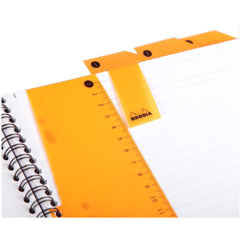 Бизнес–тетрадь Rhodia из серии Active станет незаменимым помощником для деловых людей, ведь в ней собрано всё необходимое для ведения и хранения записей. Обложка изделия выполнена из пластика. Тетрадь имеет удобный формат – А5, благодаря чему изделие легко поместится в рюкзак или небольшую сумку. Вид скрепления – гребень, который дает возможность раскрывать тетрадь на 360?. А специальная перфорация позволит аккуратно отделить листы от тетради. Внутренний блок состоит из высококачественной гладкой бумаги Clairefontaine объёмом 80 листов плотностью 90 г/м2. Линовка – клетка с рамкой для заголовка и даты. Бизнес–тетрадь содержит следующие бизнес–добавки: 6 съемных пронумерованных закладок, которыми можно разделить тетрадь на темы и без труда найти нужную запись; съемная линейка, которую с легкостью можно перемещать в удобное место.