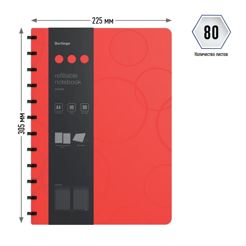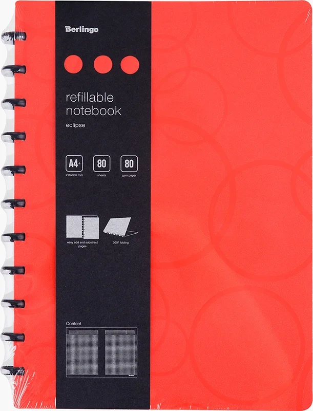 Бизнес-тетрадь А4+, 80л., Berlingo 'Eclipse', клетка, на кольцах, с возм. замены блока, 80г/м2, плас
