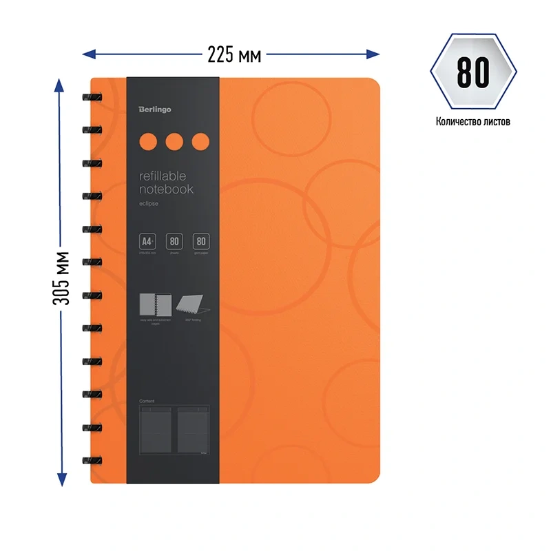 Бизнес-тетрадь А4+, 80л., Berlingo 'Eclipse', клетка, на кольцах, с возм. замены блока, 80г/м2, плас