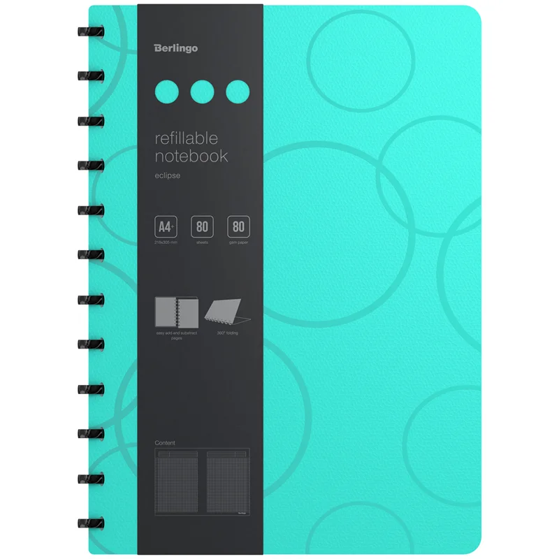Бизнес-тетрадь А4+, 80л., Berlingo 'Eclipse', клетка, на кольцах, с возм. замены блока, 80г/м2, плас