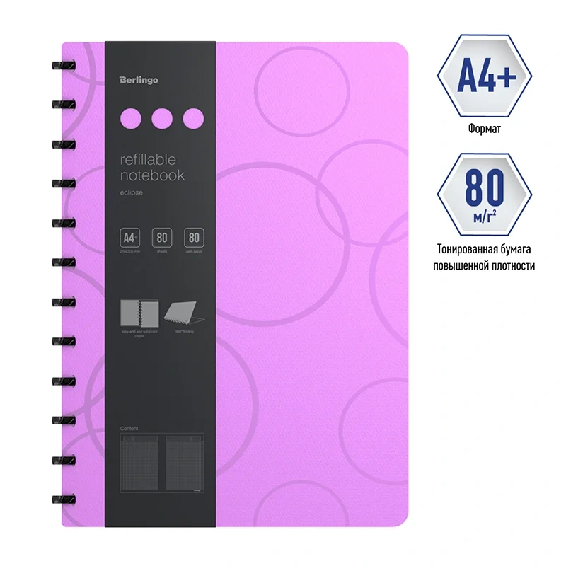 Бизнес-тетрадь А4+, 80л., Berlingo 'Eclipse', клетка, на кольцах, с возм. замены блока, 80г/м2, плас