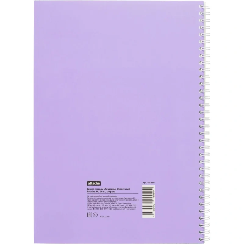 Бизнес-тетрадь А4 96л Attache Акварель фиолетовый, клетка, гребень, картон