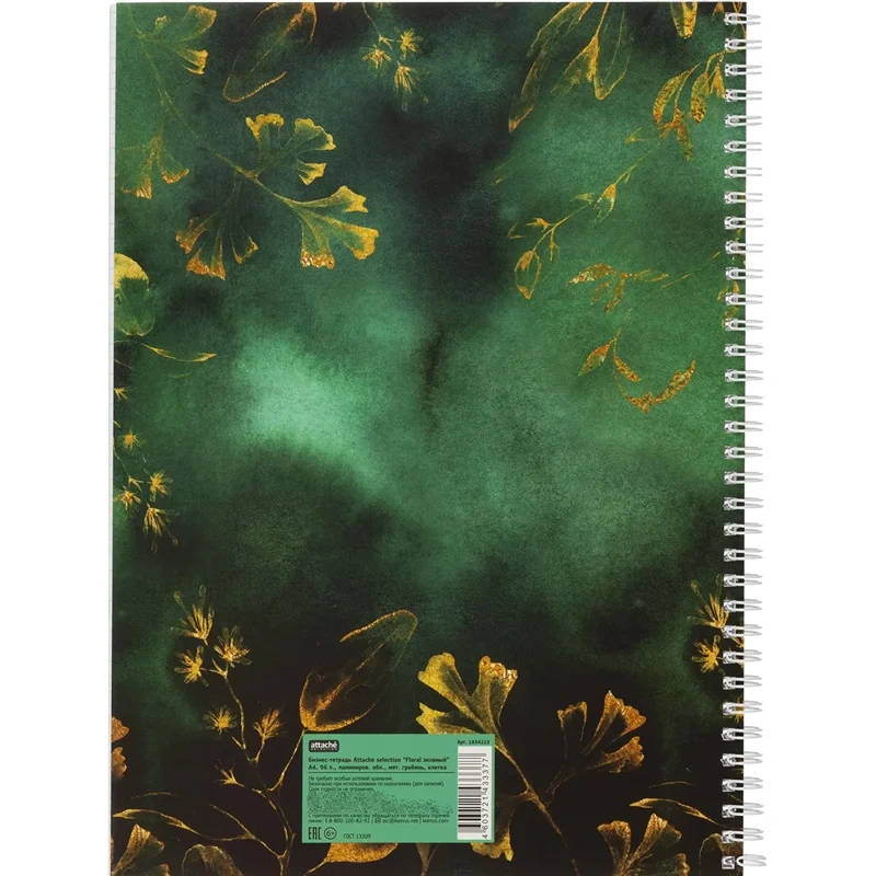 Бизнес-тетрадь А4 96л Attache Selection Floral клет,спираль,мел.карт,зелен