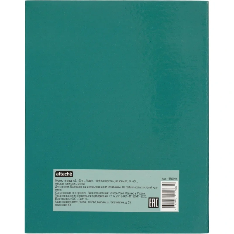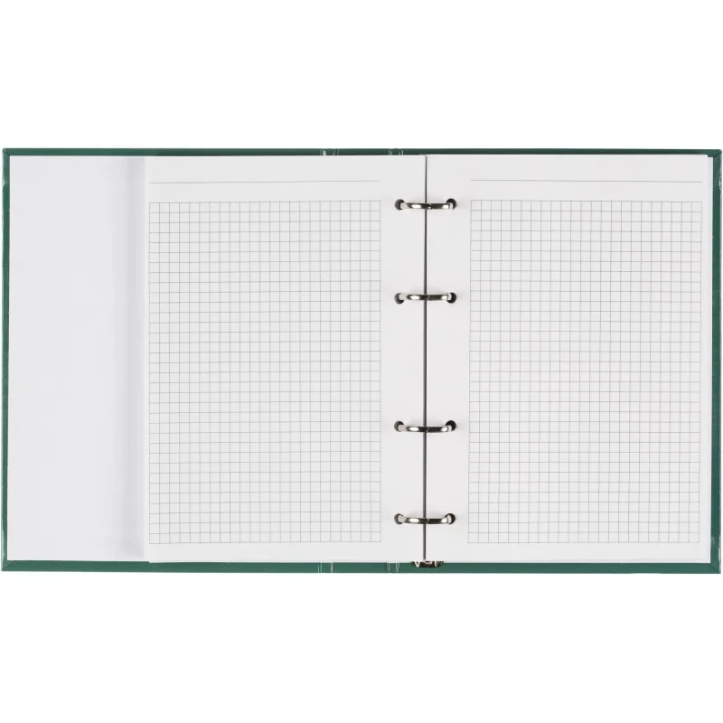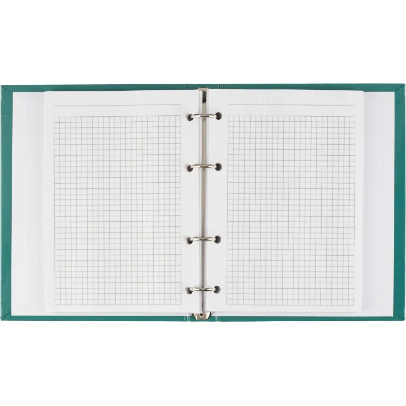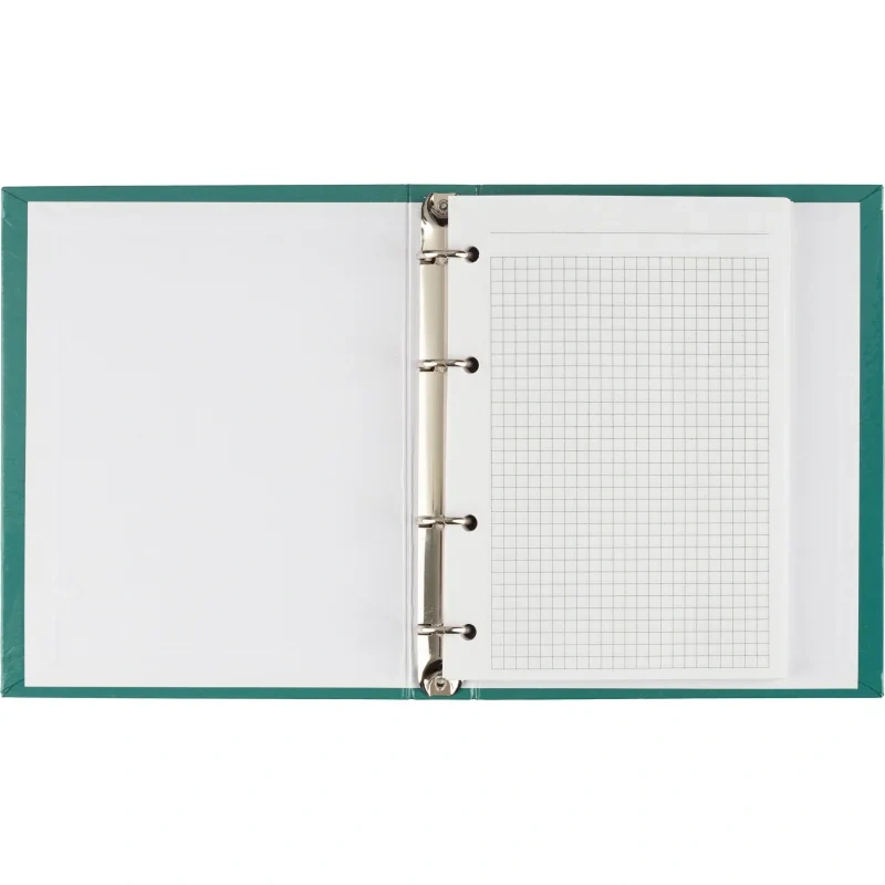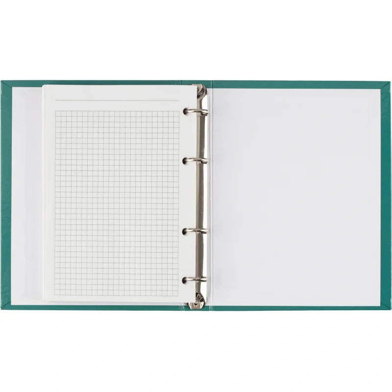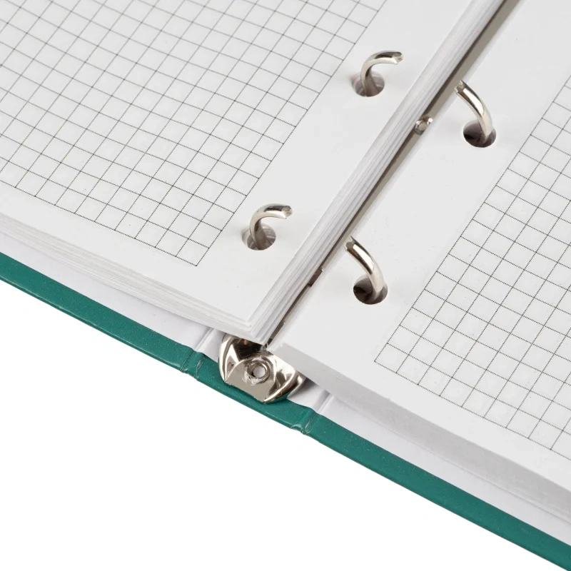 Бизнес-тетрадь Attache Optima А5 120 листов зелёная в клетку, глянцевая ламинацияБизнес-тетрадь формата A5 с твёрдой обложкой, покрытой глянцевой ламинацией, представляет собой удобный и стильный аксессуар для деловых записей. Внутренний блок состоит из 120 листов белой офсетной бумаги плотностью 65 г/кв.м, разлинованных в клетку без полей. Листы имеют синий цвет линовки, что делает записи чёткими и аккуратными. Перфорации нет.Тетрадь оснащена кольцевым механизмом с 4 кольцами, расположенными слева, что позволяет удобно добавлять или удалять страницы по мере необходимости. Размер блока - 140x197 мм. Обложка выполнена из 7БЦ картона плотностью 980 г/кв.м, что придаёт тетради дополнительную прочность и долговечность. Зелёная обложка с глянцевой ламинацией придаёт тетради элегантный и профессиональный вид.Законодательные и технические документы