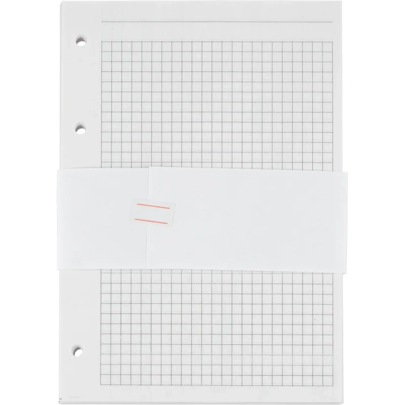 Внутренний блок состоит из 160 листов белой офсетной бумаги плотностью 60 г/кв.м, разлинованных в клетку. Листы не имеют полей. Цвет линовки — синий, что делает записи более чёткими и удобными. Тетрадь идеально подходит для учёбы, работы или ведения личных записей. Возможность нанесения логотипа и тиснения позволяет персонализировать тетрадь для корпоративных нужд.