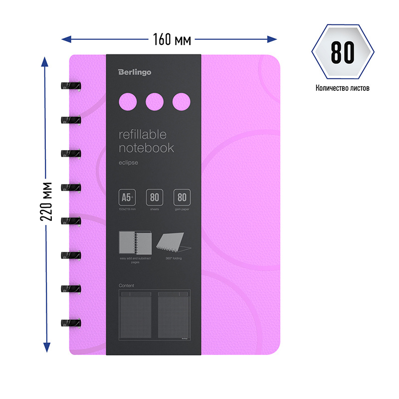 Бизнес-тетрадь А5+, 80л., Berlingo 'Eclipse', клетка, на кольцах, с возм. замены блока, 80г/м2, плас
