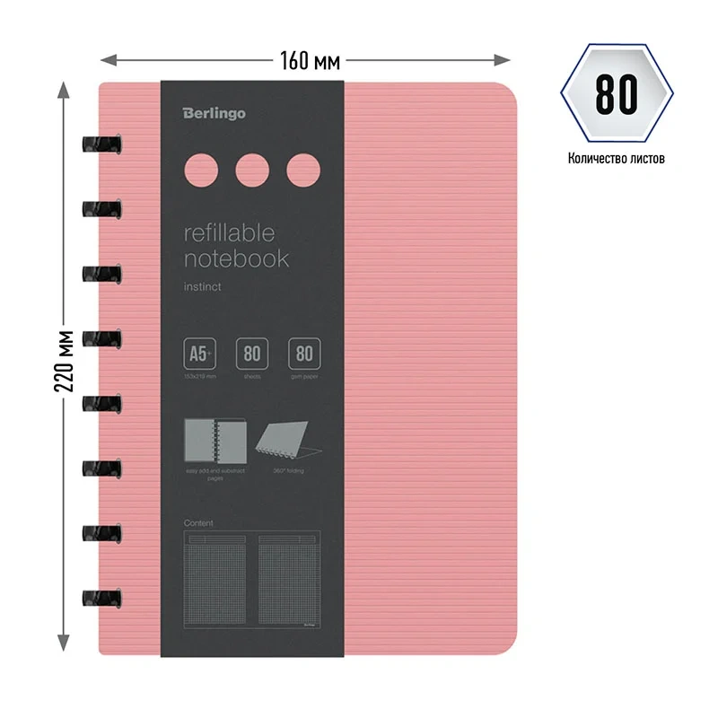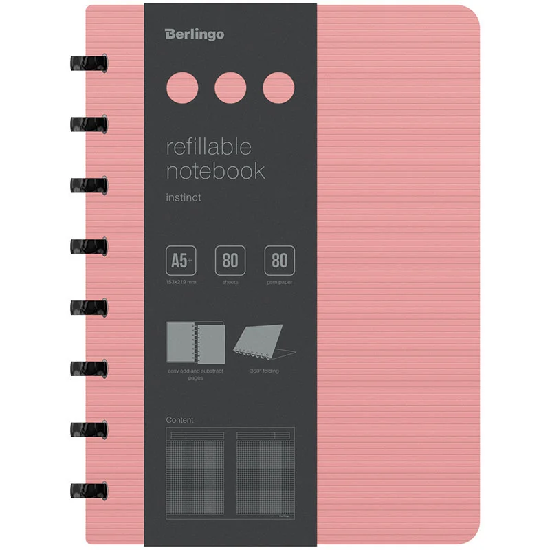 Бизнес-тетрадь А5+, 80л., Berlingo 'Radiance', клетка, на кольцах, с возм. замены блока, 80г/м2, пла