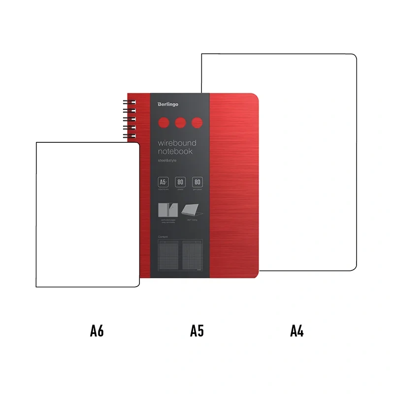 Бизнес-тетрадь А5+, 80л., Berlingo 'Steel&Style', клетка, на гребне, 80г/м2, пластик. (полифом) обло