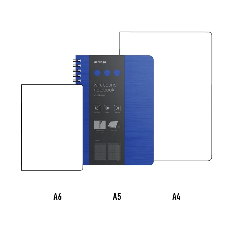 Бизнес-тетрадь А5+, 80л., Berlingo 'Steel&Style', клетка, на гребне, 80г/м2, пластик. (полифом) обло