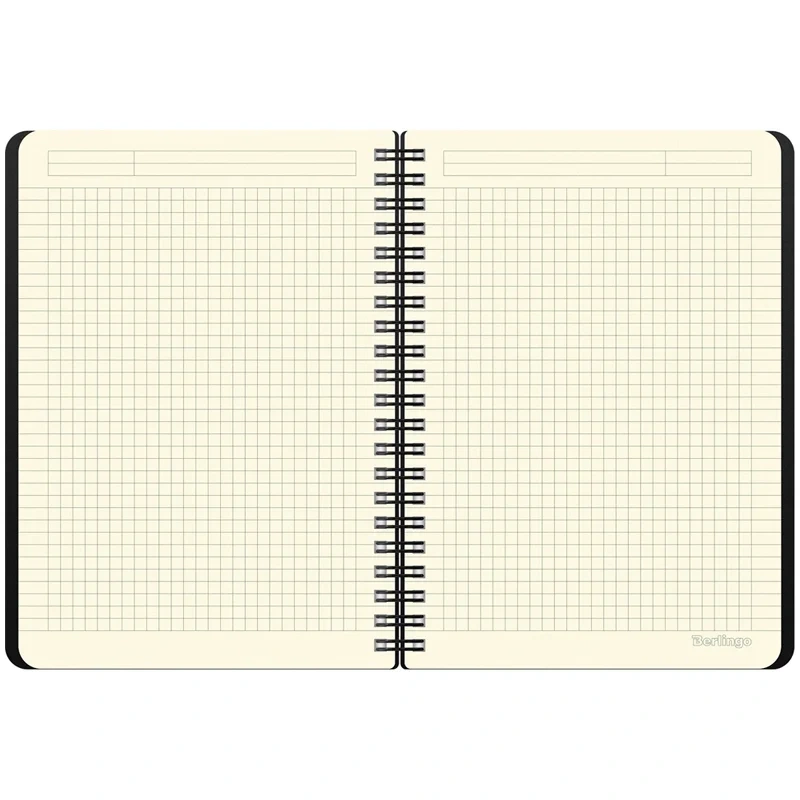 Обложка выполнена из картона плотностью 210 г/кв. м, покрыта тиснением фольгой, без рисунка и поля для подписи. Внутренний блок изготовлен из белой офсетной бумаги плотностью 60 г/кв. м с белизной 100 процентов. Листы разлинованы в клетку, цвет линовки серый, поля отсутствуют. Цвет обреза - белый.Крепление и конструкция