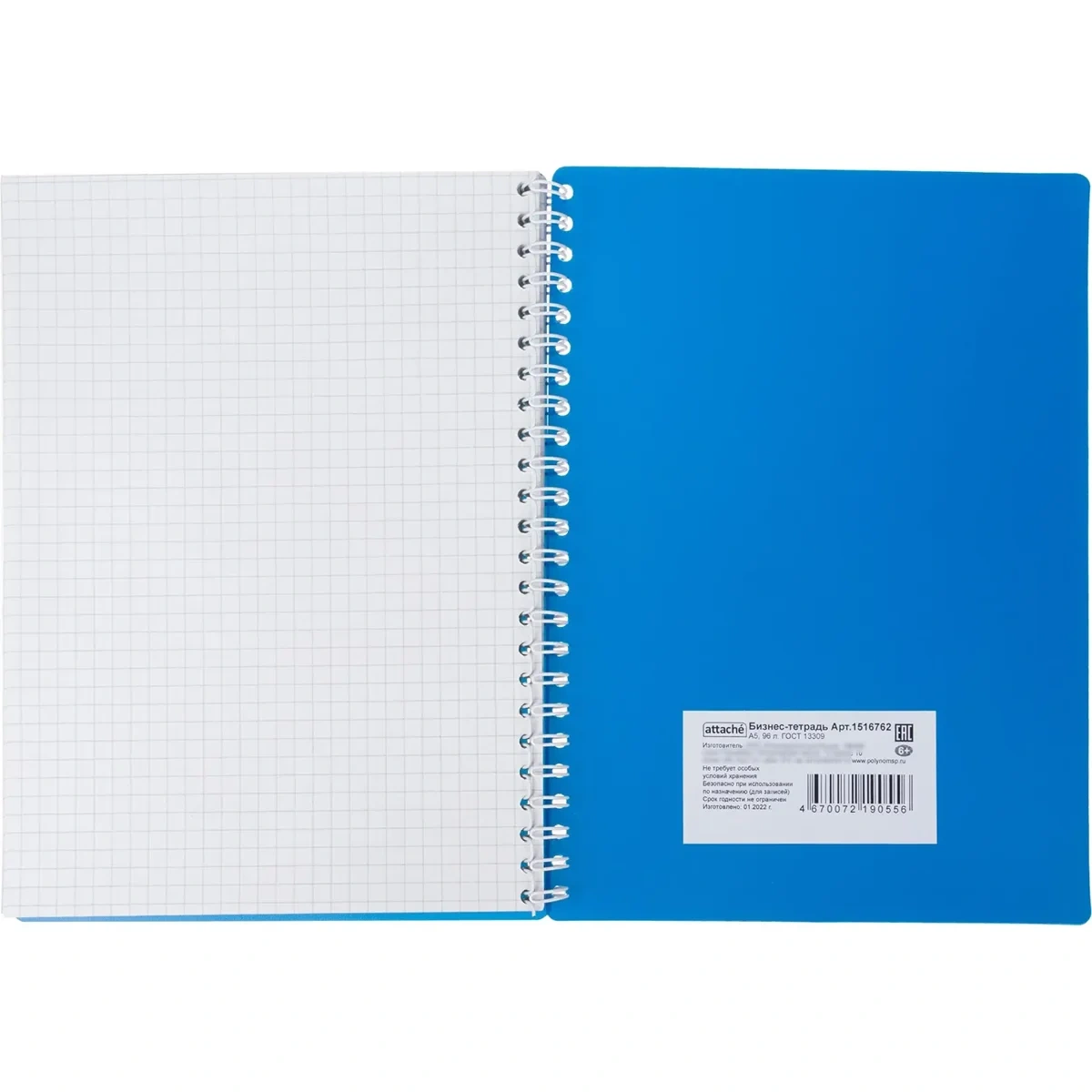 Бизнес-тетрадь А5-,96л,гребень,обл.пластик,клетка, Attache Plastic, синий