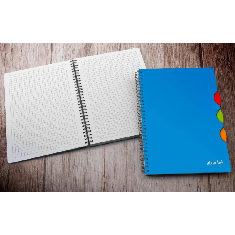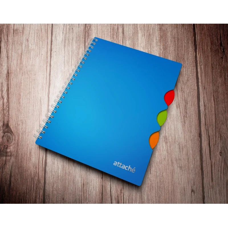 Бизнес-тетрадь Attache А4,100л,кл,спир,обл.пластик,с разделителями,голубой