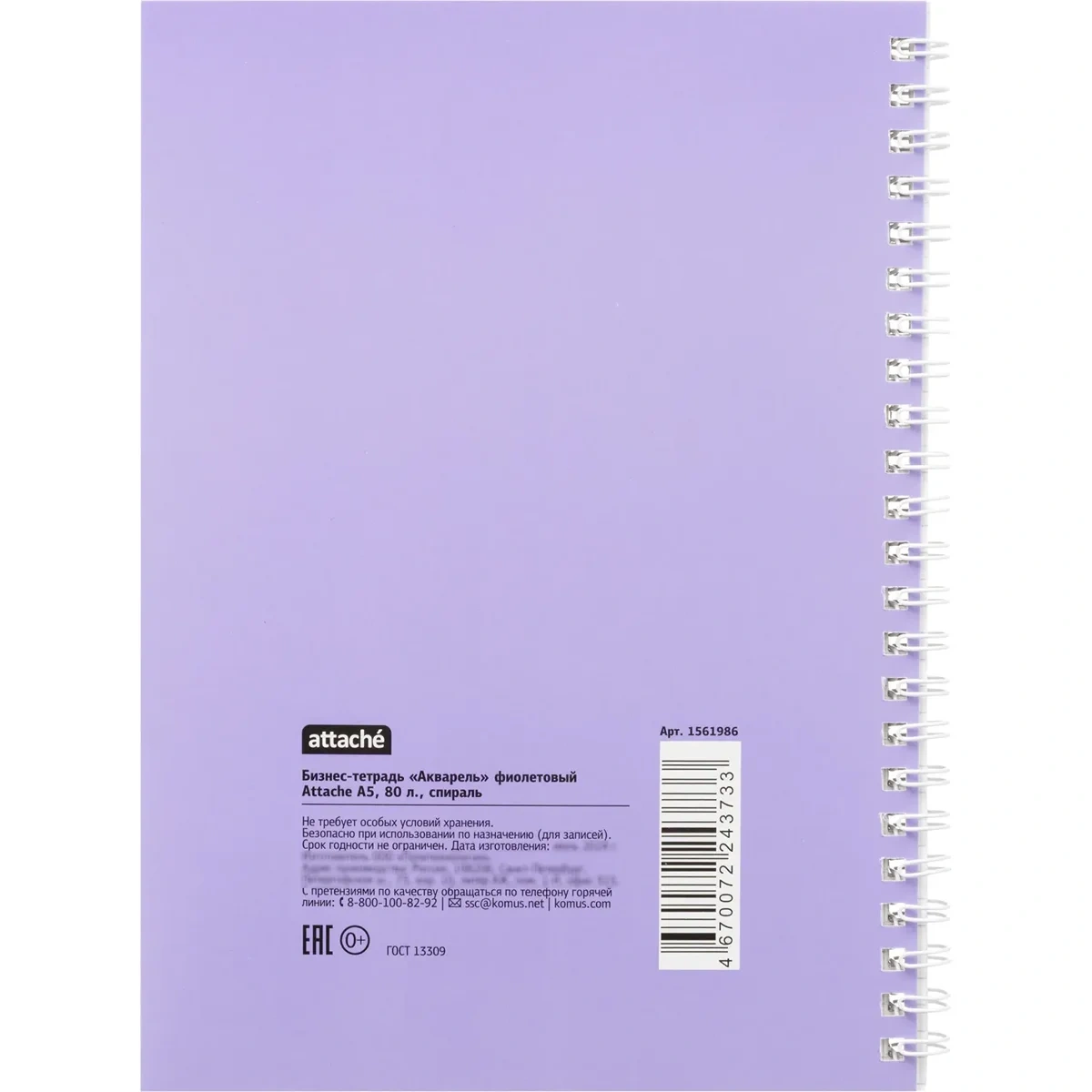 Бизнес тетрадь Attache А5, 80л, в клетку, на спирали, фиолетовая