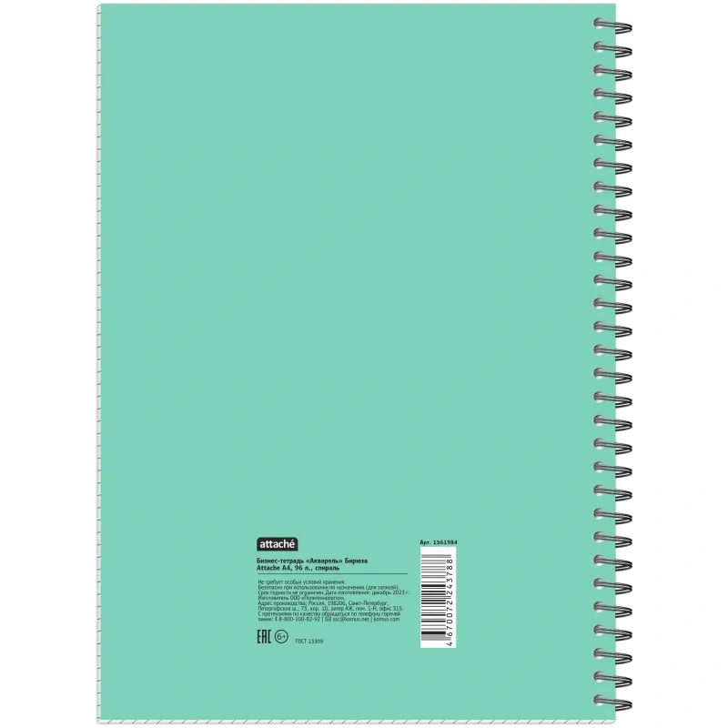 Бизнес-тетрадь Тетрадь Attache Акварель гребень картон А4 96 л,бирюза