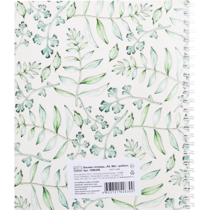 Бизнес-тетрадь Цветы представлена в формате А5. Размер изделия: 170×203 мм. Обложка сделана из мелованного картона. Плотность обложки и подложки: 200 г/кв.м. Бумажный блок содержит 96 листов белой, офсетной бумаги в клетку. Плотность блока — 60 г/кв.м. Тип крепления — спираль.