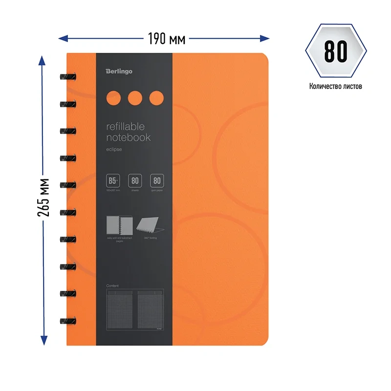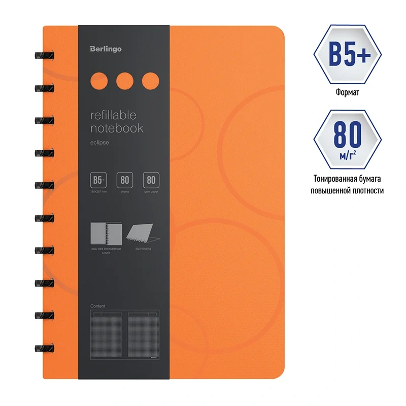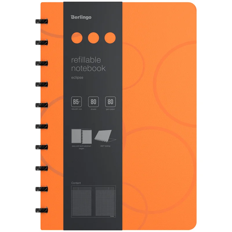 Бизнес-тетрадь В5+, 80л., Berlingo 'Eclipse', клетка, на кольцах, с возм. замены блока, 80г/м2, плас