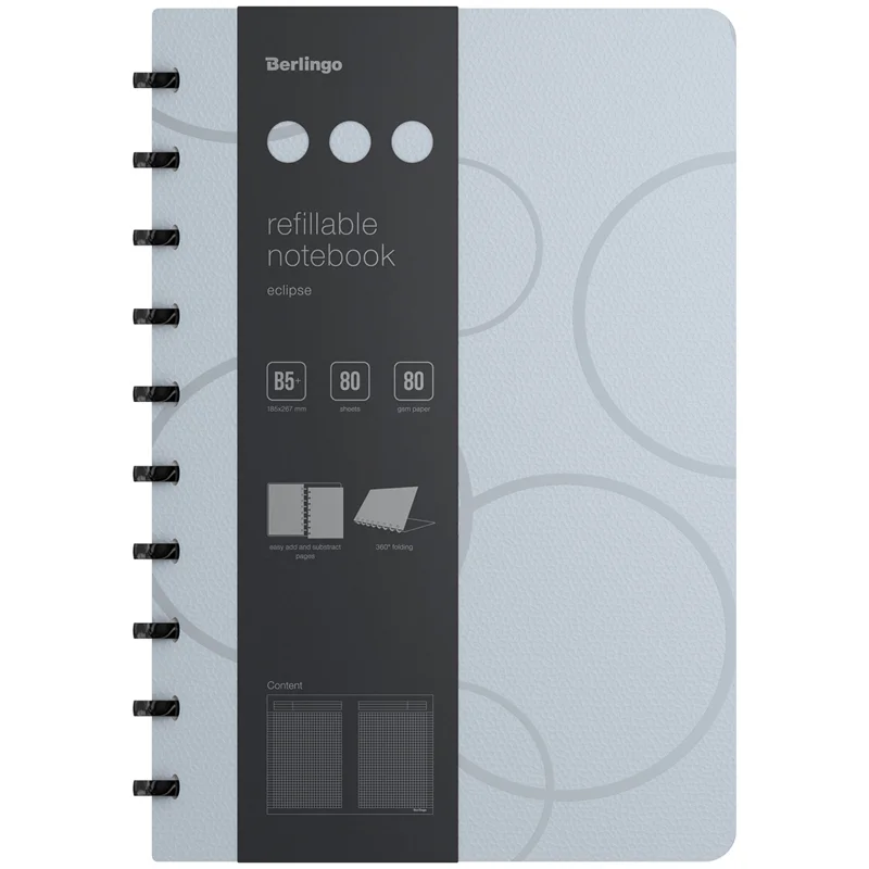 Бизнес-тетрадь В5+, 80л., Berlingo 'Eclipse', клетка, на кольцах, с возм. замены блока, 80г/м2, плас