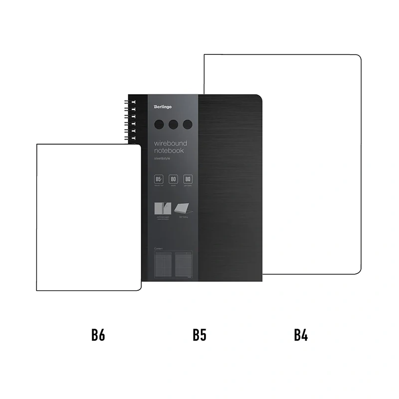Бизнес-тетрадь В5+, 80л., Berlingo 'Steel&Style', клетка, на гребне, 80г/м2, пластик. (полифом) обло