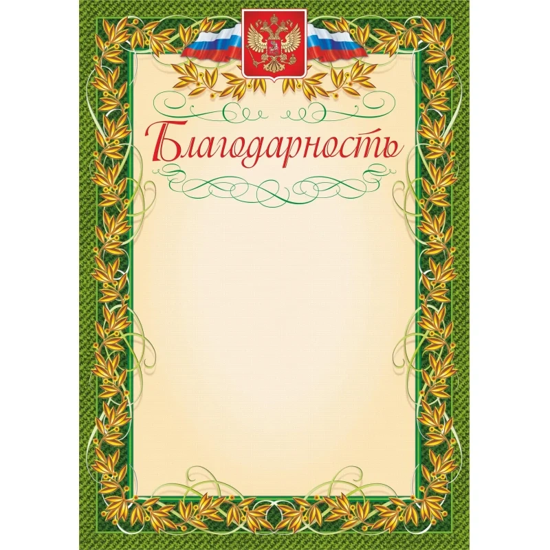 Отзывы о «Благодарственное письмо А4, герб с триколором, красная рамка, 10шт»