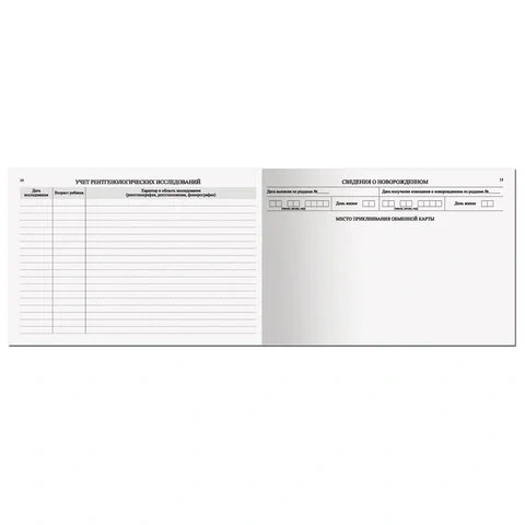 Бланк формата А5 (205х150 мм) содержит 96 листов офсетной бумаги. Обложка из бумвинила в сочетании с книжным переплетом обеспечивает изделию хорошую износоустойчивость. Горизонтальная ориентация. Соответствует государственным стандартам документального ведения учета. Утвержден Министерством здравоохранения.