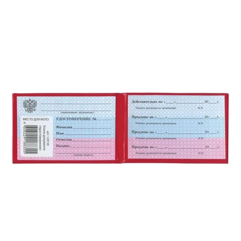 Бланк документа 'Удостоверение' (жесткое), 'Герб России', красный, 66х100 мм, STAFF, 129138